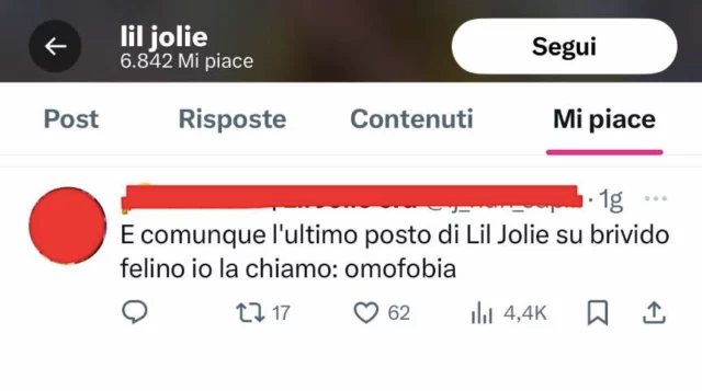 Al termine della puntata di Amici 23, Lil Jolie ha piazzato “like” a questo commento: