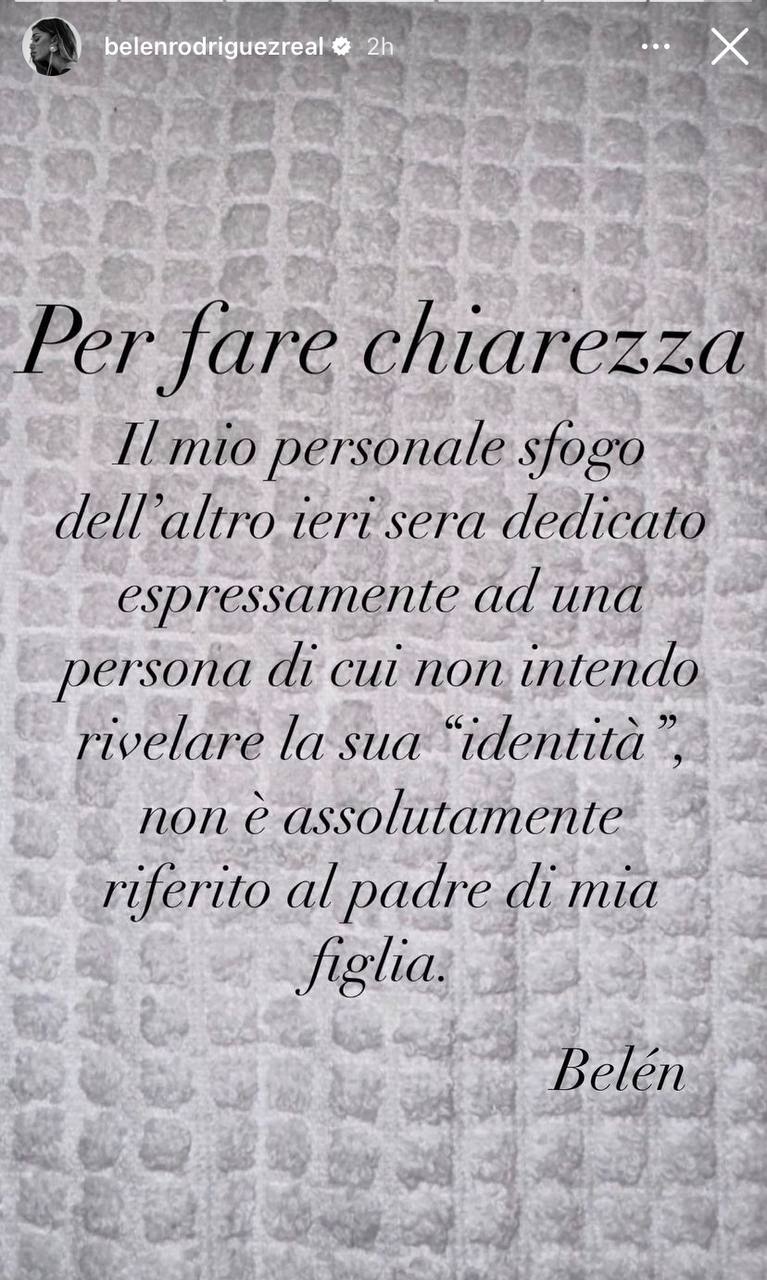 Per fare chiarezza. Il mio sfogo personale dell’altro ieri sera dedicato espressamente a una persona di cui non intendo rivelare l’identità, non è assolutamente riferito al padre di mia figlia.
