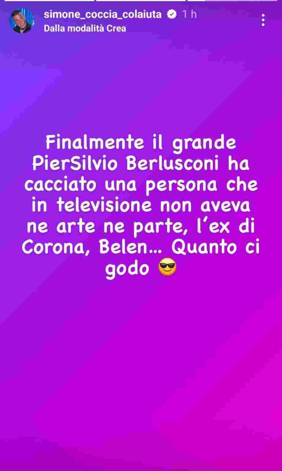 Mentre l’addio di Belen a Mediaset è stato senza alcun rancore e frutto di una scelta personale della showgirl, c’è chi preferisce pensare che si sia trattato di una decisione dei vertici e “gode”. Lui è un ex gieffino ed ex compagno di Stefania Pezzopane, Simone Coccia, il quale in modo esagerato ha voluto esprimere un suo commento su quanto emerso dagli ultimi palinsesti Mediaset: