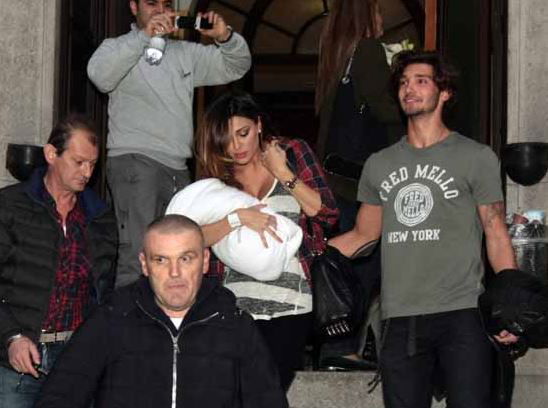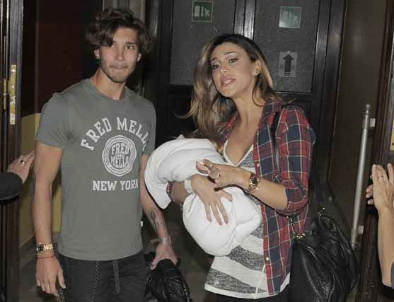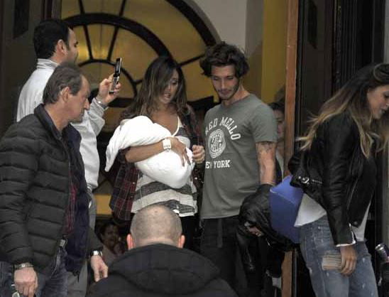 A seguire, qualche foto rubata durante la sua uscita dalla clinica con in braccio il piccolo Santiago e, poco in disparte, Stefano De Martino.