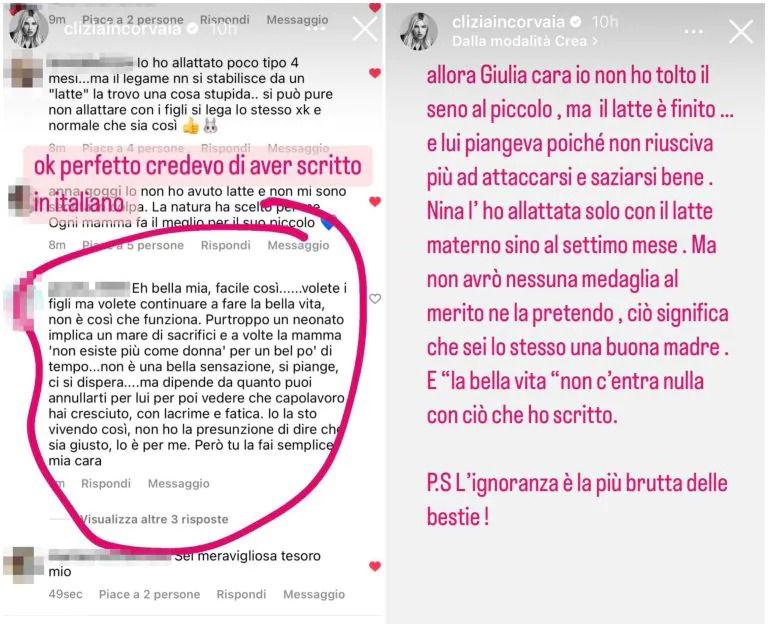 Clizia Incorvaia ha replicato nelle Instagram Stories evidenziando nuovamente il concetto (già molto chiaro):
