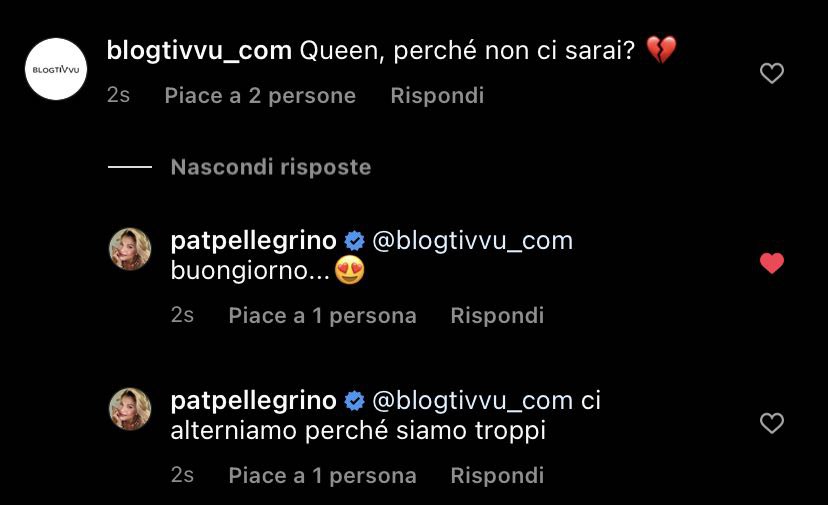A tal proposito, proprio Queen Patty Pellegrino ci aveva detto una cosa simile rispondendo su Instagram ad un nostro commento: