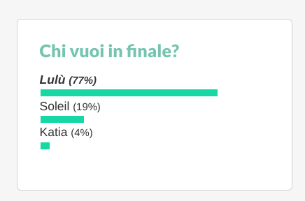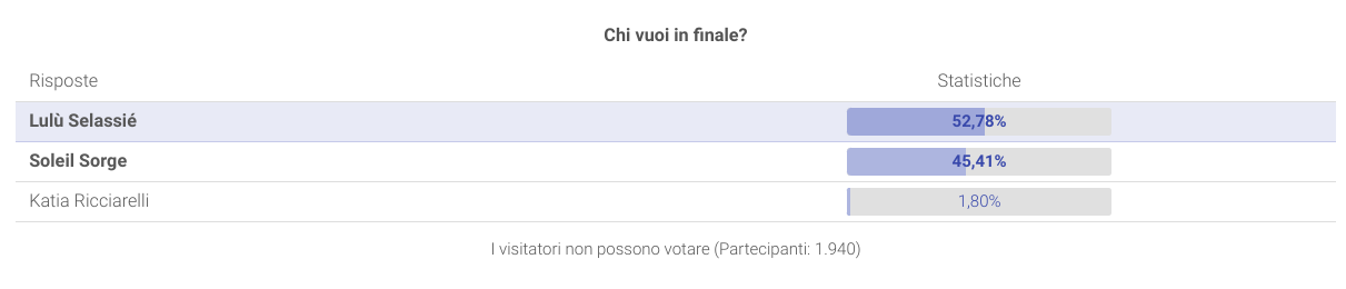 Non ci resta che dare subito uno sguardo ai risultati online anche se, in base alle prime proiezioni tutti vorrebbero Lulù in finale: siete d’accordo?