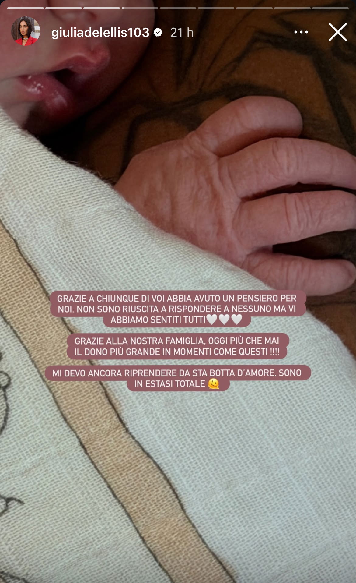 Giulia ha confessato di sentirsi ancora sopraffatta dall’intensità delle emozioni che sta vivendo: “Mi devo ancora riprendere da sta botta d’amore, sono in estasi totale”. Ha poi rivolto un pensiero a tutti coloro che le hanno scritto messaggi o espresso affetto in questi giorni: “Grazie a chiunque di voi abbia avuto un pensiero per noi. Vi abbiamo sentiti tutti. Grazie alla nostra famiglia. Oggi più che mai il dono più grande in momenti come questi”.