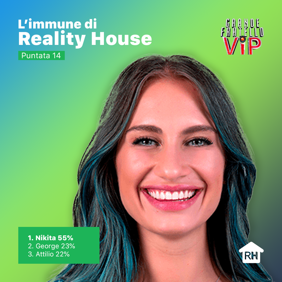 Uno sguardo ora al sondaggio ospitato da Reality House dove troviamo prima Nikita con il 55% delle preferenze e George e Attilio a dividersi quasi equamente i restanti voti.