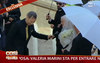 Mentre si discuteva del tocco dorato richiesto dalla stessa Marini per i propri invitati (circa 700 per una cerimonia sobria, nonostante la stessa showgirl abbia poi ammesso che il suo non sarebbe stato un matrimonio all’insegna dello sfarzo), Valeria è giunta in auto, completamente coperta da una serie di ombrelli bianchi, al fine di coprire i flash dei fotografi, avendo già concordato un’esclusiva che si sarebbe realizzata in chiesa (immaginiamo che l’esclusiva in questione sia di Chi, essendo Alfonso Signorini, direttore del settimanale, uno dei testimoni della coppia).