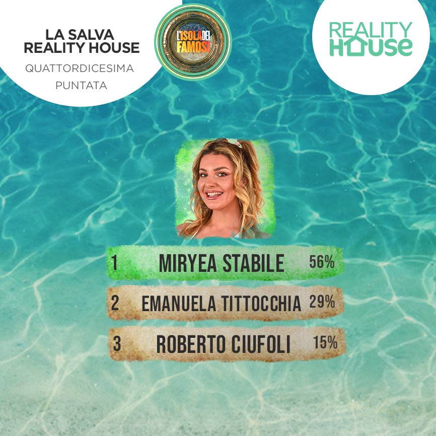In vista del nuovo confronto a suon di televoti, cosa dicono i sondaggi? Come di consueto, immancabile il sondaggio accolto sul portale Reality House: secondo i dati raccolti a rischiare di essere eliminato è Roberto Ciufoli. Solo il 15% lo vorrebbe salvo. A rischio anche Emanuela Tittocchia che è la preferita dal 29% mentre primeggia Miryea con il 56% delle preferenze.