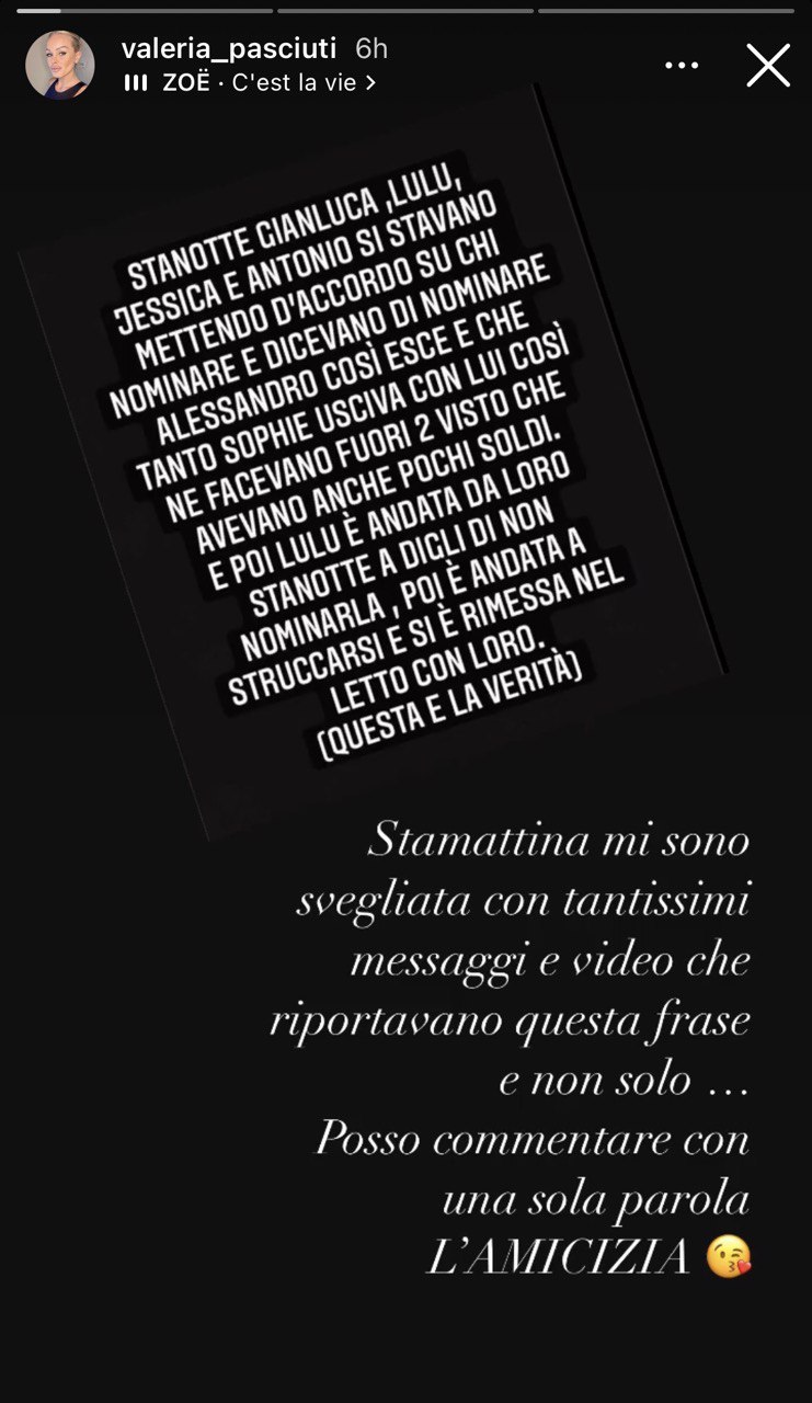 Nelle passate ore sui social è circolata una voce secondo la quale Lulù e Jessica Selassié, conversando con le due new entry, Antonio e Gianluca, si sarebbero messe d’accordo sulle prossime nomination. Nel dettaglio, avrebbero deciso di nominare Alessandro Basciano al fine di intaccare anche Sophie Codegnoni. Ad intervenire sulla questione è stata anche la mamma dell’ex tronista, Valeria Pasciuti, attraverso le sue Instagram Stories.