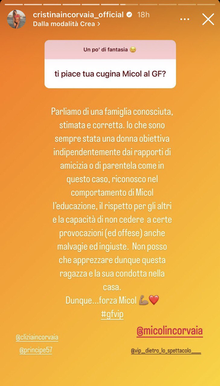 Dal medesimo cognome è facile risalire a Cristina Incorvaia, ex dama del trono over, la quale nei giorni scorsi è stata interpellata ad esprimere un suo parere sulla giovane cugina. Ed ecco cosa ha risposto ai suoi follower: