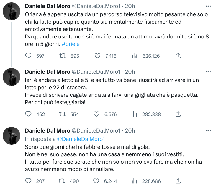 Oriana ha quindi fatto l’elenco dei luoghi d’Italia che ha percorso in questi pochi giorni dalla sua uscita, giustificando quindi la sua stanchezza ed il suo conseguente crollo. Un crollo che tuttavia non tutti avrebbero capito, tanto da criticarla.