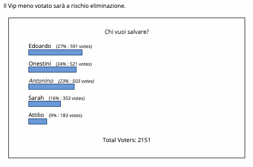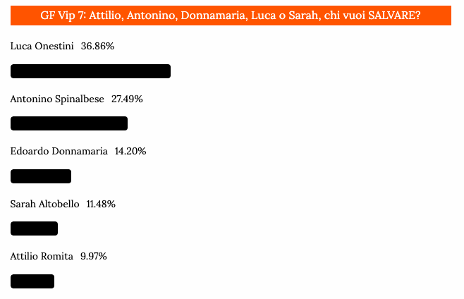 Preferito Grande Fratello Vip del 9 febbraio: Attilio, Antonino, Donnamaria, Luca o Sarah, ecco i risultati dei sondaggi