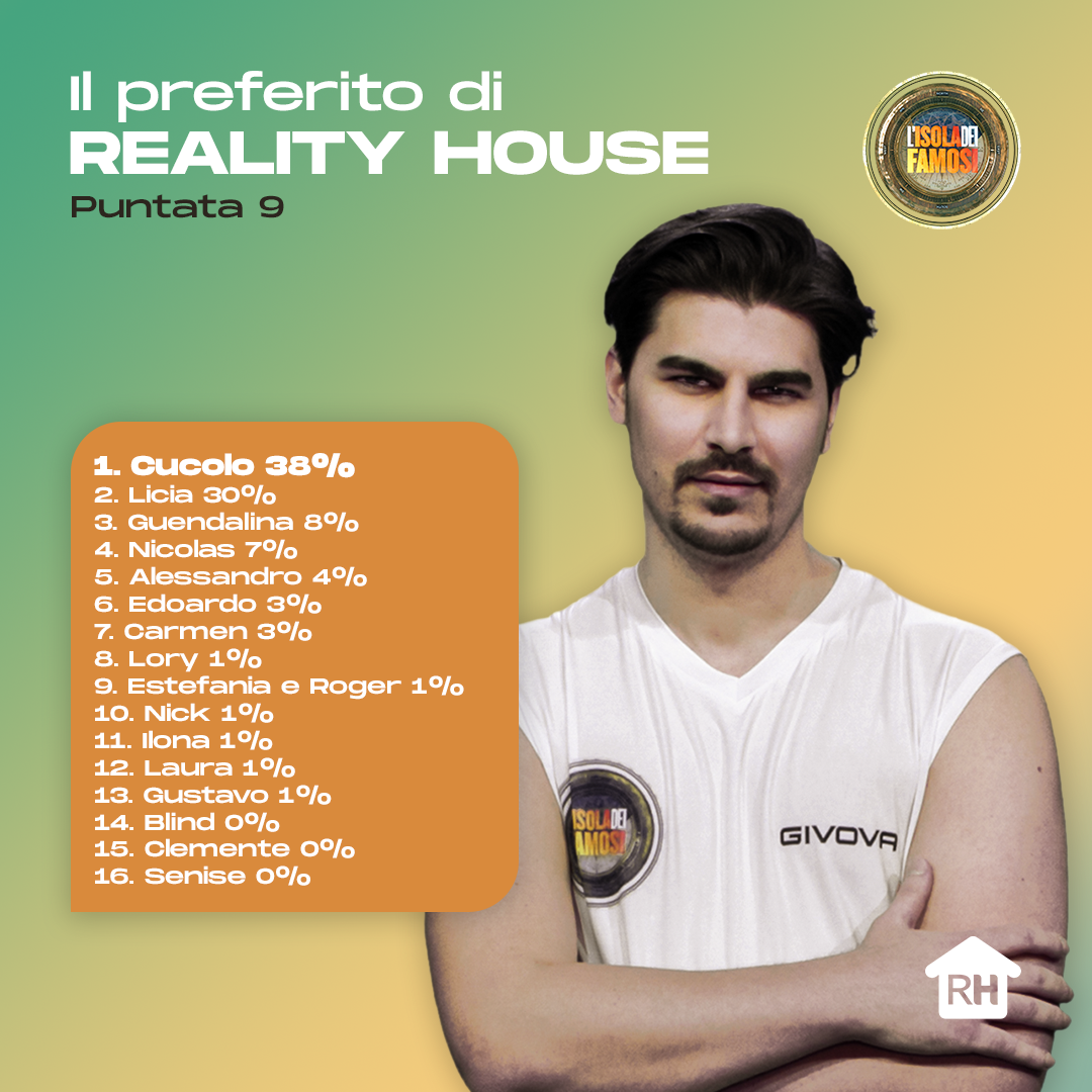 A tal proposito, uno dei sondaggi è ospitato come sempre dal portale Reality House che vede oggi al primo posto il compagno di Lory Del Santo, Marco Cucolo con il 38% delle preferenze, Lo segue Licia Nunez al 30% e poi Guendalina Tavassi, a netta distanza (8%).