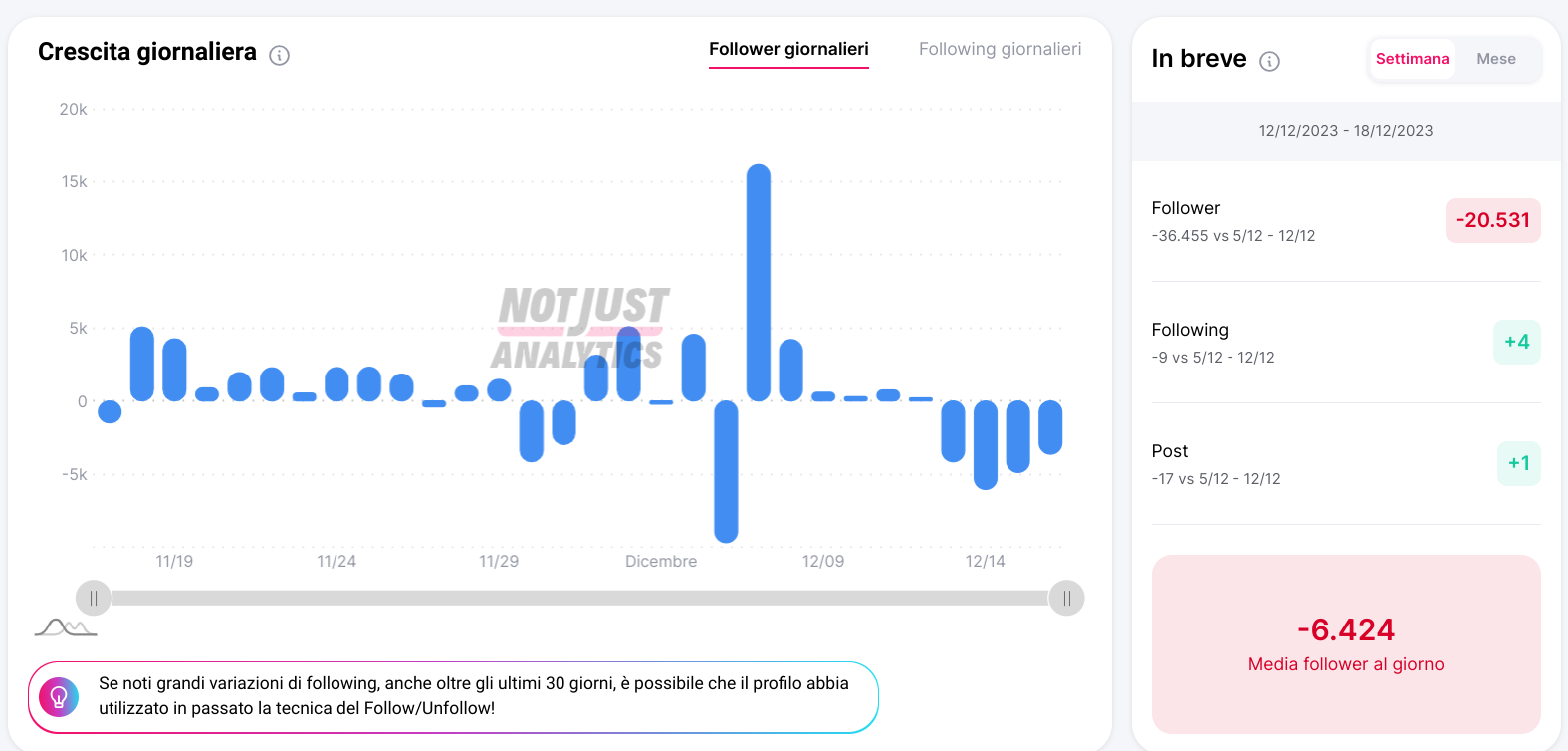 Briciole, rispetto ai quasi 30 milioni di follower di Chiara. In realtà dando uno sguardo ai dati di Not Just Analytics il calo sarebbe ben superiore (oltre 20mila follower, ma un numero comunque non preoccupante rispetto agli attuali utenti).