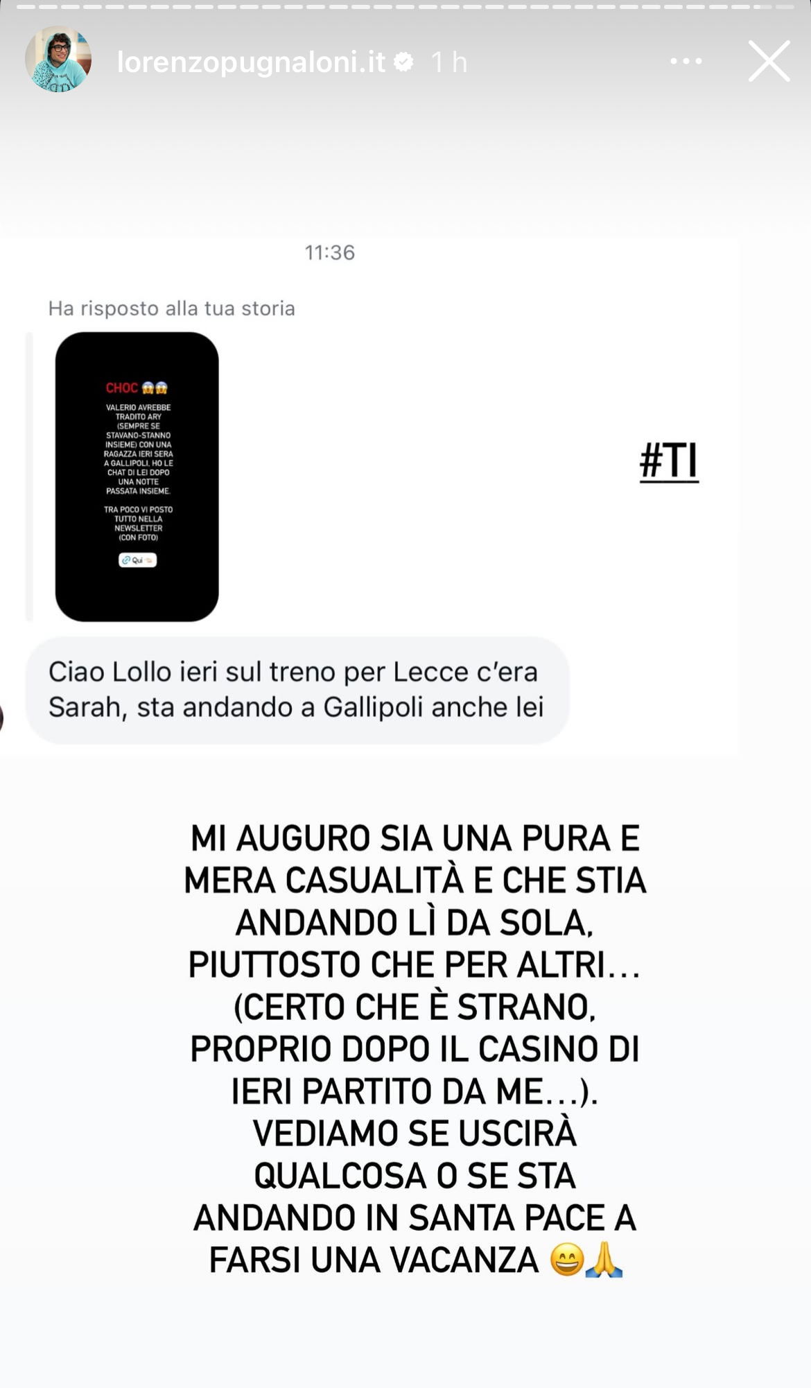 Valerio continua a frequentarsi con Ary oppure no? Sempre Lorenzo Pugnaloni ha fatto sapere che lui avrebbe trascorso una serata a Gallipoli con un’altra ragazza, e ci sarebbero delle chat personali che proverebbero quanto successo dopo quella notte insieme. “Valerio avrebbe tradito Ary (sempre se stavano-stanno insieme) con una ragazza ieri sera a Gallipoli. Ho le chat di lei dopo una notte passata insieme”, ha scritto.