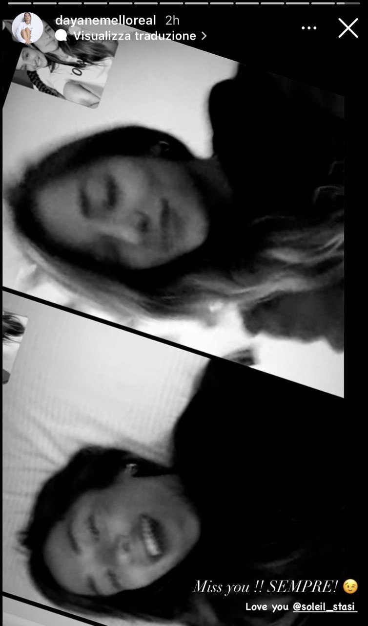 Le due amiche oggi si sono finalmente risentite attraverso una videochiamata che la brasiliana ha voluto prontamente immortalare e postare nelle sue Instagram Stories commentando: “Miss you!! Sempre! Love you”, e taggando Soleil.