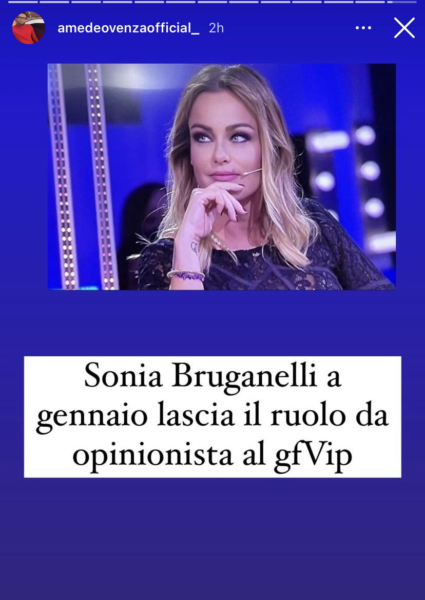Secondo Amedeo Venza, infatti, proprio Sonia Bruganelli dovrebbe lasciare il ruolo da opinionista direttamente a gennaio, con due mesi in anticipo dalla fine del reality show che chiuderà i battenti il prossimo 14 marzo.