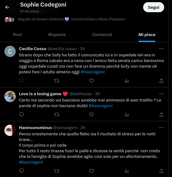 Sophie Codegoni non ha risposto direttamente ma ha cliccato “like” a dei post di Twitter che invece il tradimento lo confermerebbero.