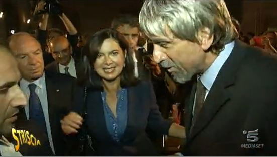 Ieri sera, nel corso della nuova puntata di Striscia la Notizia, il tg satirico di Canale 5 condotto da Michelle Hunziker e Virginia Raffaele abbiamo assistito alla consegna di un nuovo Tapiro d’oro, il classico “riconoscimento” della trasmissione, da parte dello storico inviato Valerio Staffelli, a Laura Boldrini, presidente della Camera. Per Staffelli non è stato semplicissimo avvicinare la Boldrini a Roma per via della sicurezza ed è per tale ragione che l’inviato si è recato a Piacenza, dove avrebbe trovato la Boldrini in occasione di un convegno.