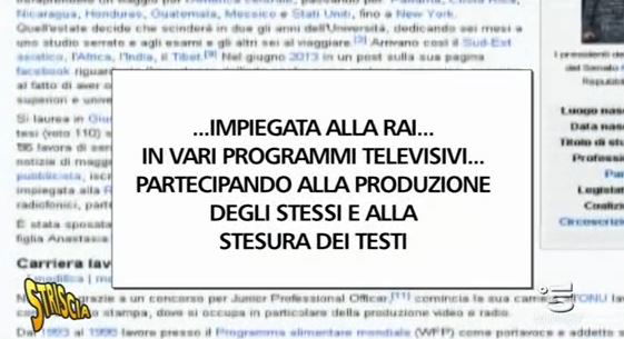 “Io ho lavorato per tre mesi come assistente della produzione di questo programma, sì”, ha replicato la Boldrini, il cui nome in effetti compariva nei titoli della trasmissione Rai. Peccato che su Wikipedia il presidente della Camera si vanta di aver contribuito alla stesura dei testi delle sue trasmissioni. Staffelli le ha quindi fatto notare le nudità delle modelle presenti, ottenendo come replica: “E infatti la mia carriera è durata poco!”.