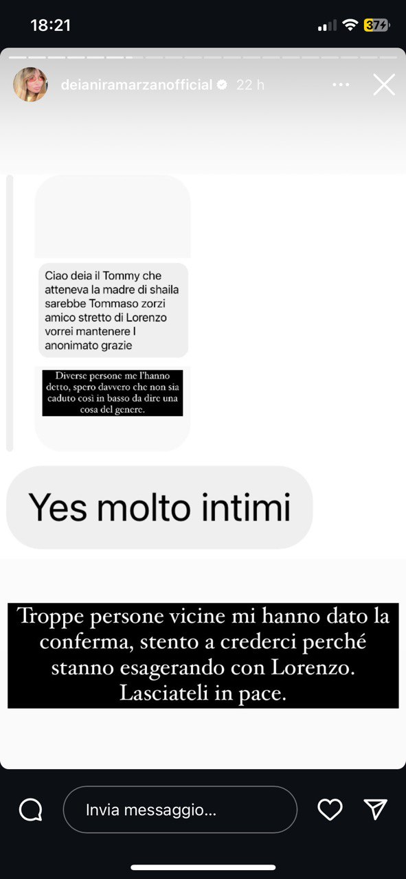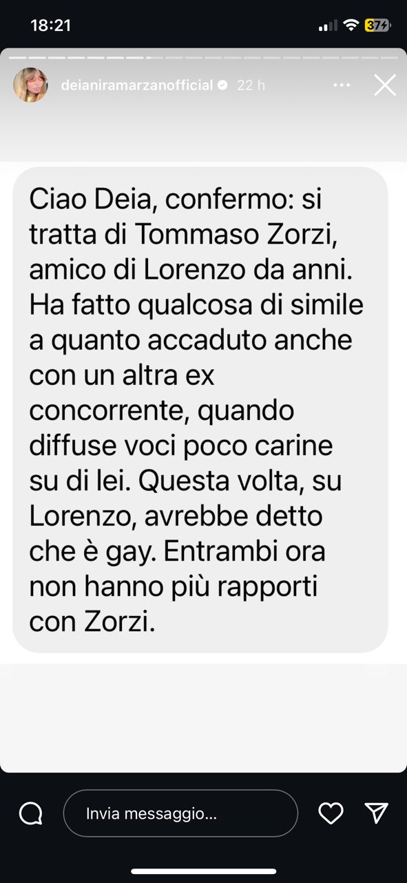 Tommaso Zorzi parla di Lorenzo e minaccia querele contro Deianira