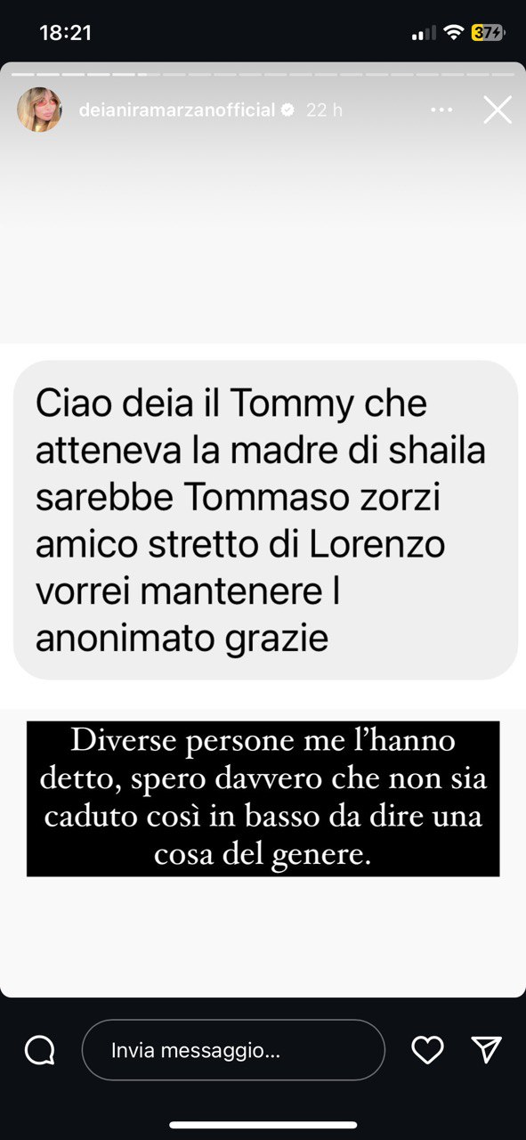 Nel corso dell’interazione, la madre di Shaila ha menzionato un certo Tommy, che secondo i social potrebbe essere proprio Zorzi. Tuttavia, il vincitore della quinta edizione del Grande Fratello Vip ha prontamente smentito ogni coinvolgimento, annunciando azioni legali contro chi ha diffuso queste notizie false.